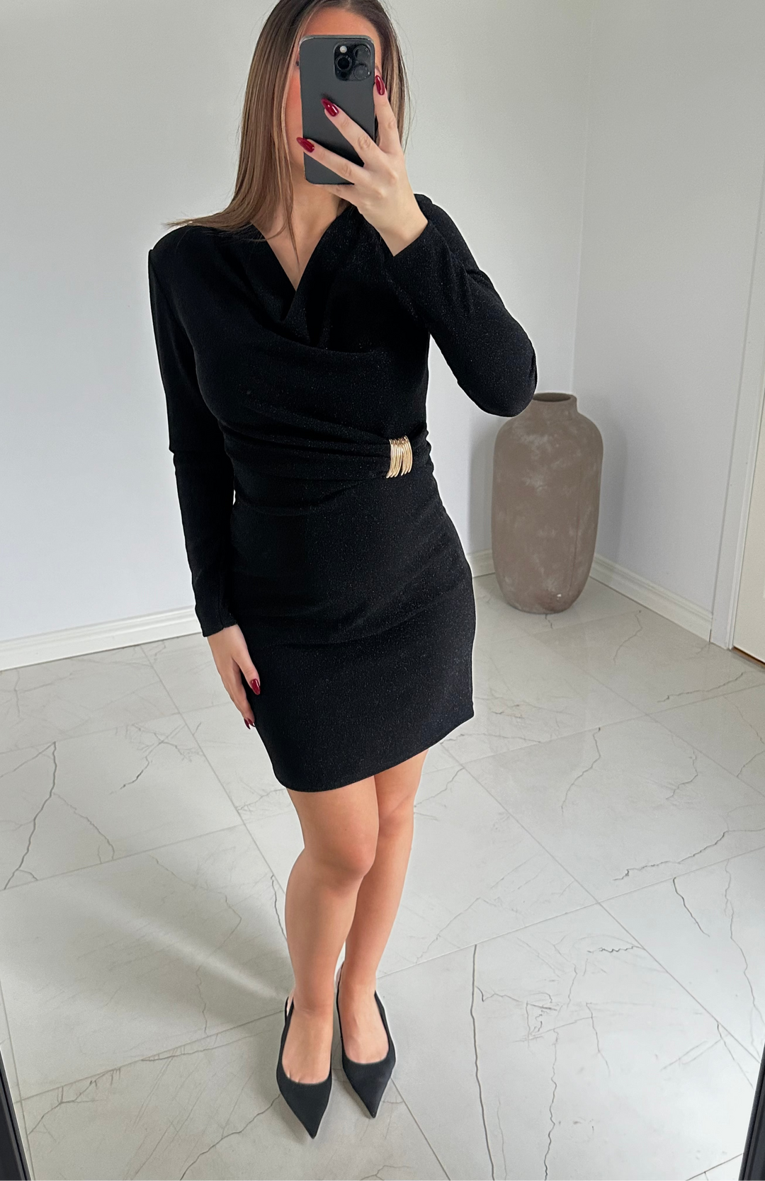 MEGAN - Glitterklänning med gulddetalj - Svart