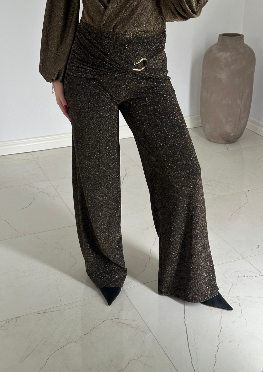 MACY - Glitterbyxa med gulddetalj - Mörk Guld