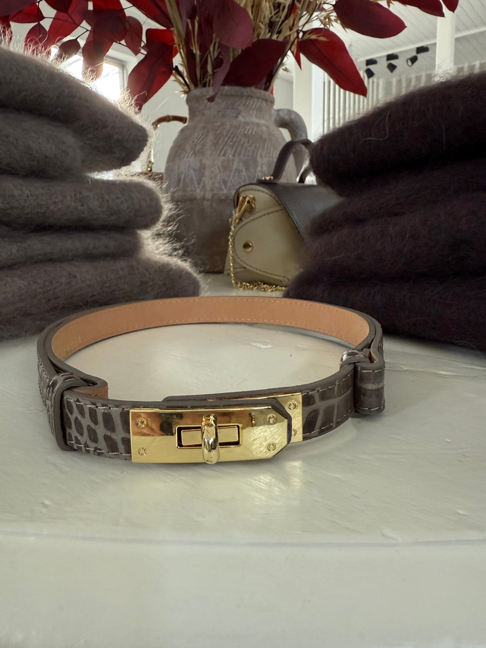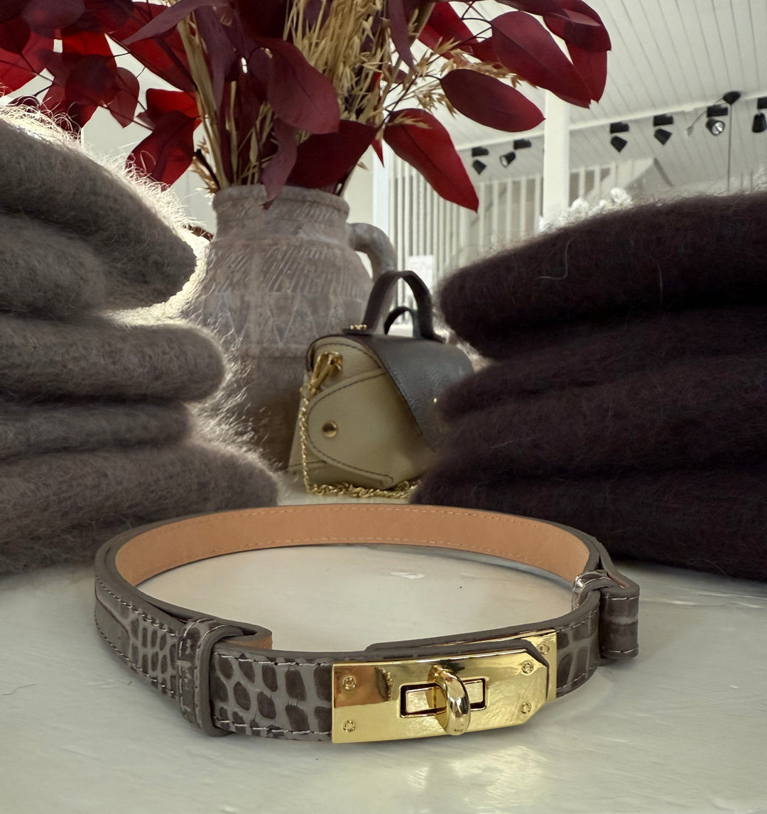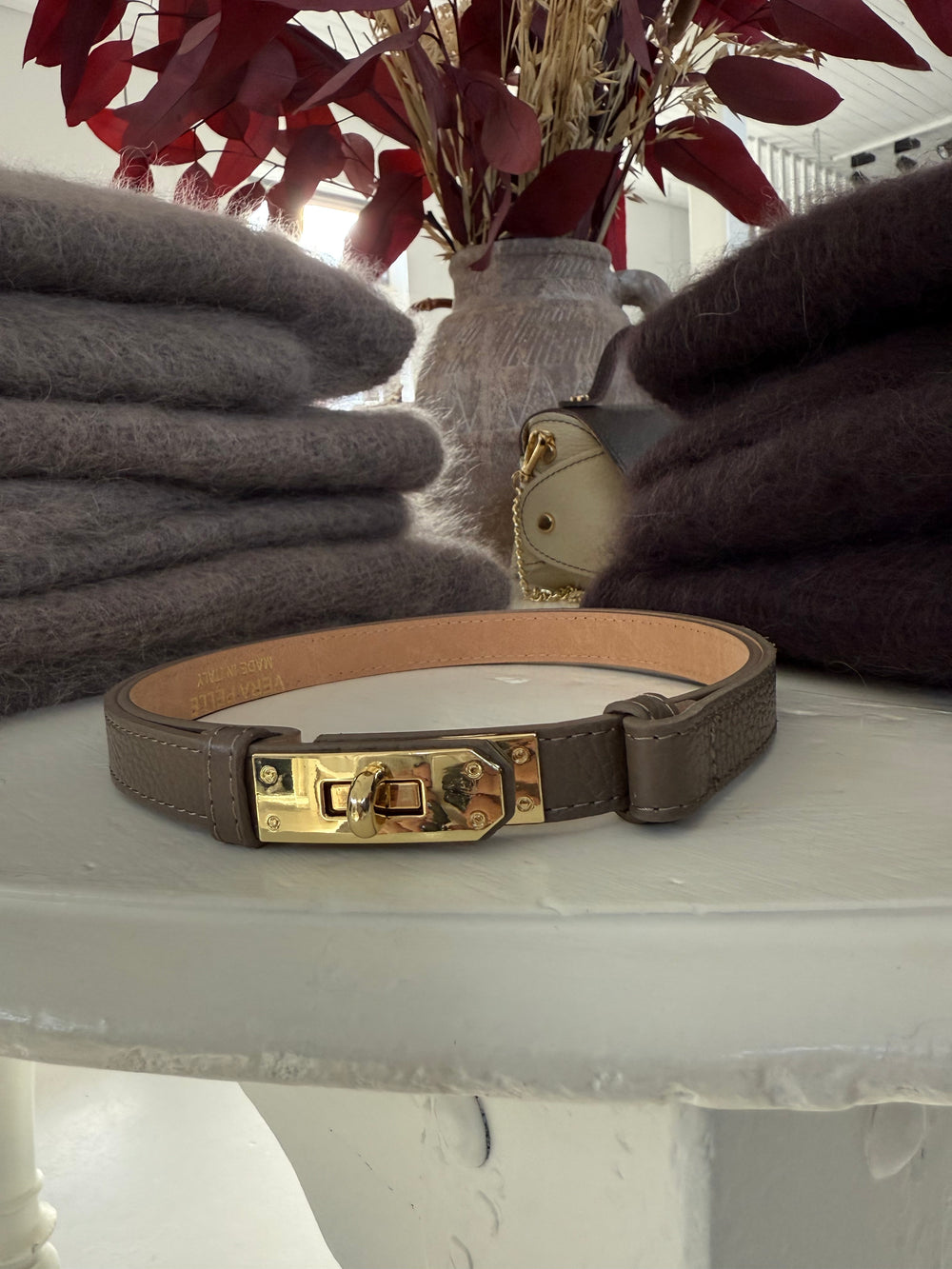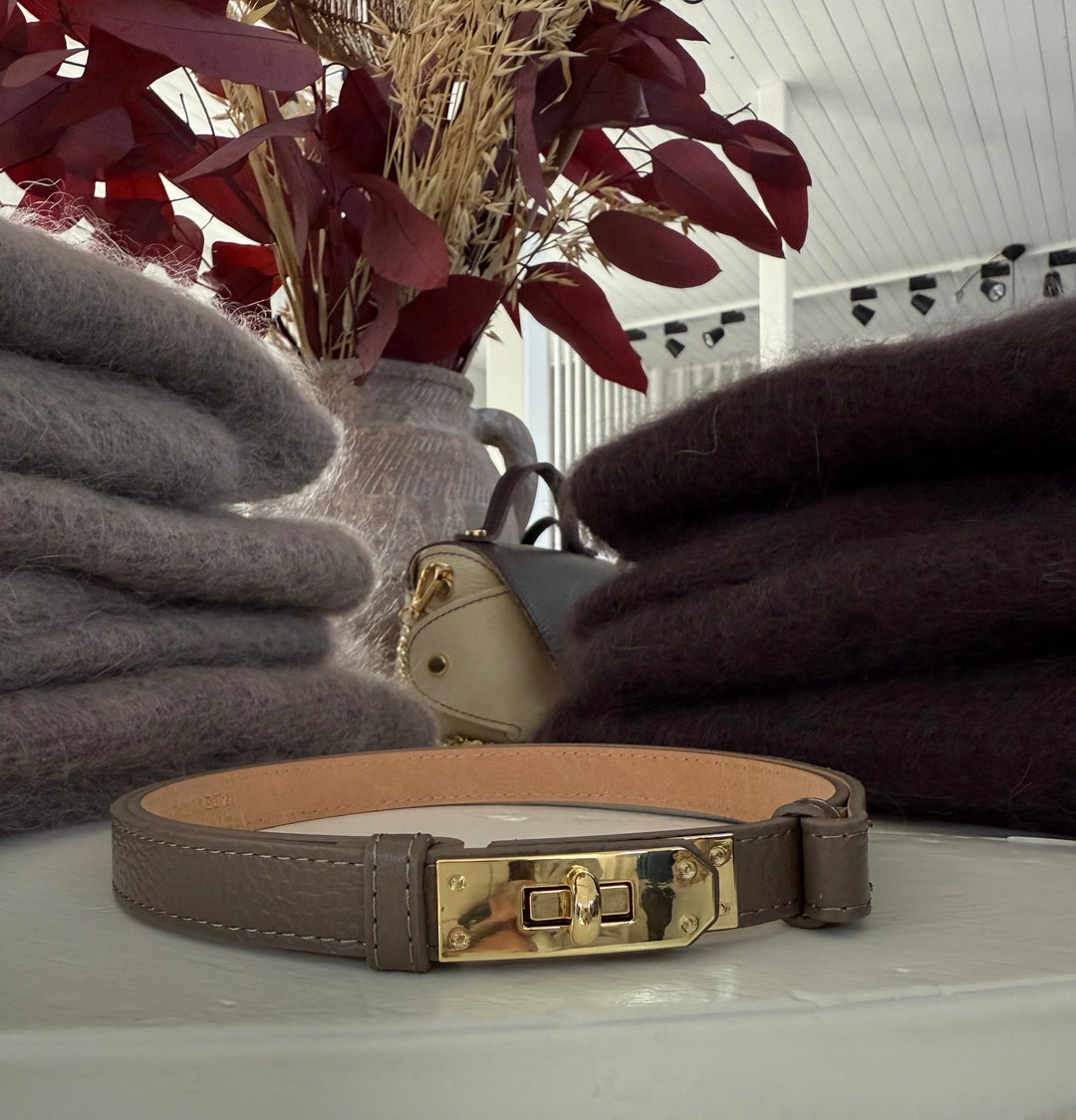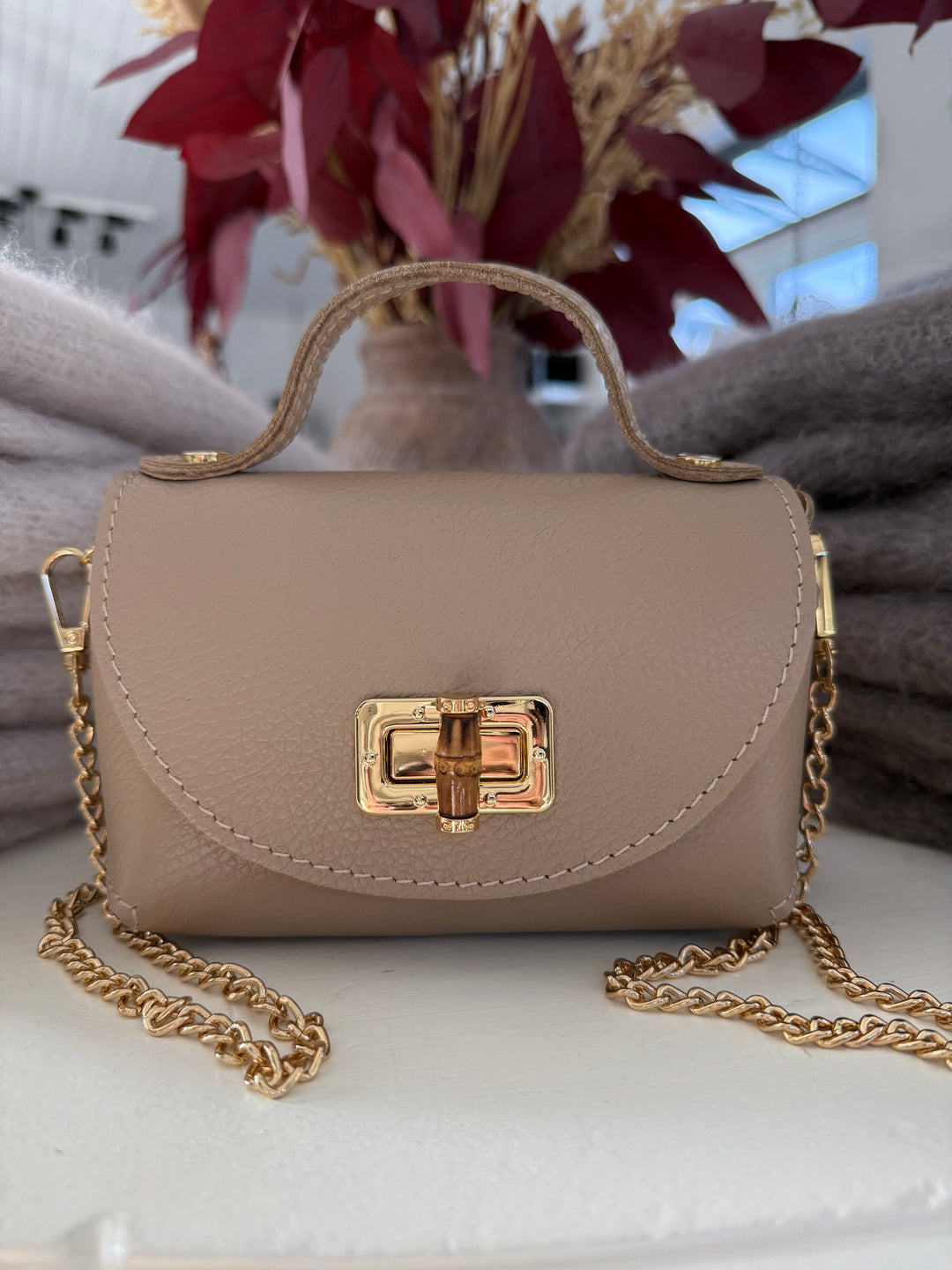 MINI ARWEN - Liten Läder väska med bambulås - Taupe