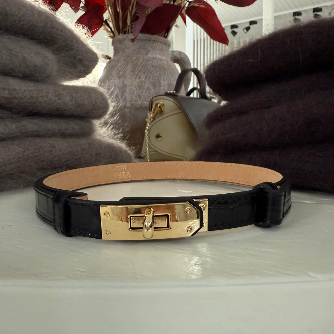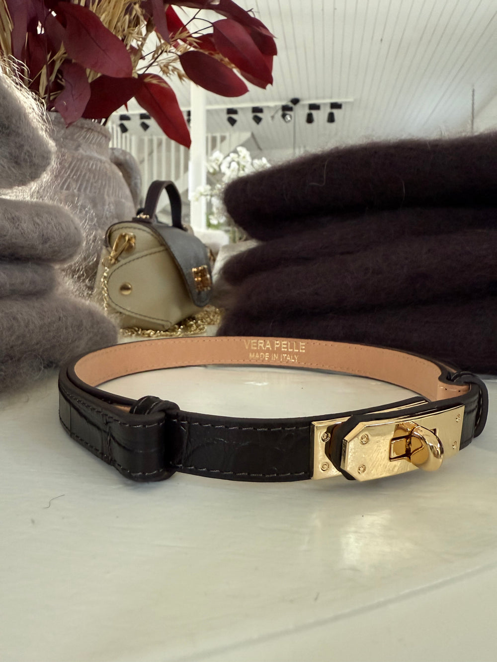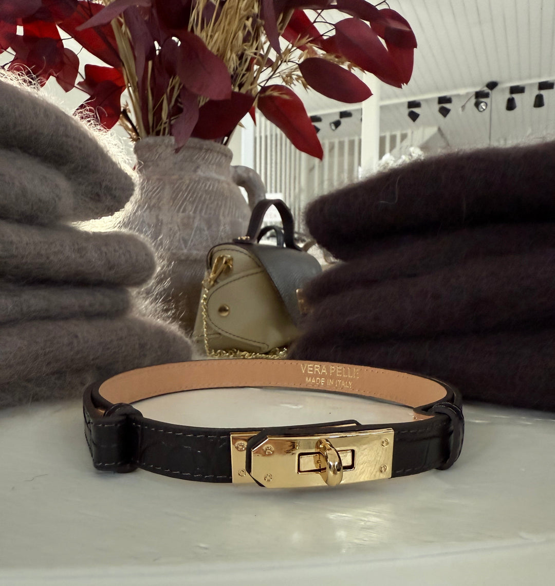 MINI ARWEN - Liten Läder väska med bambu lås - Svart