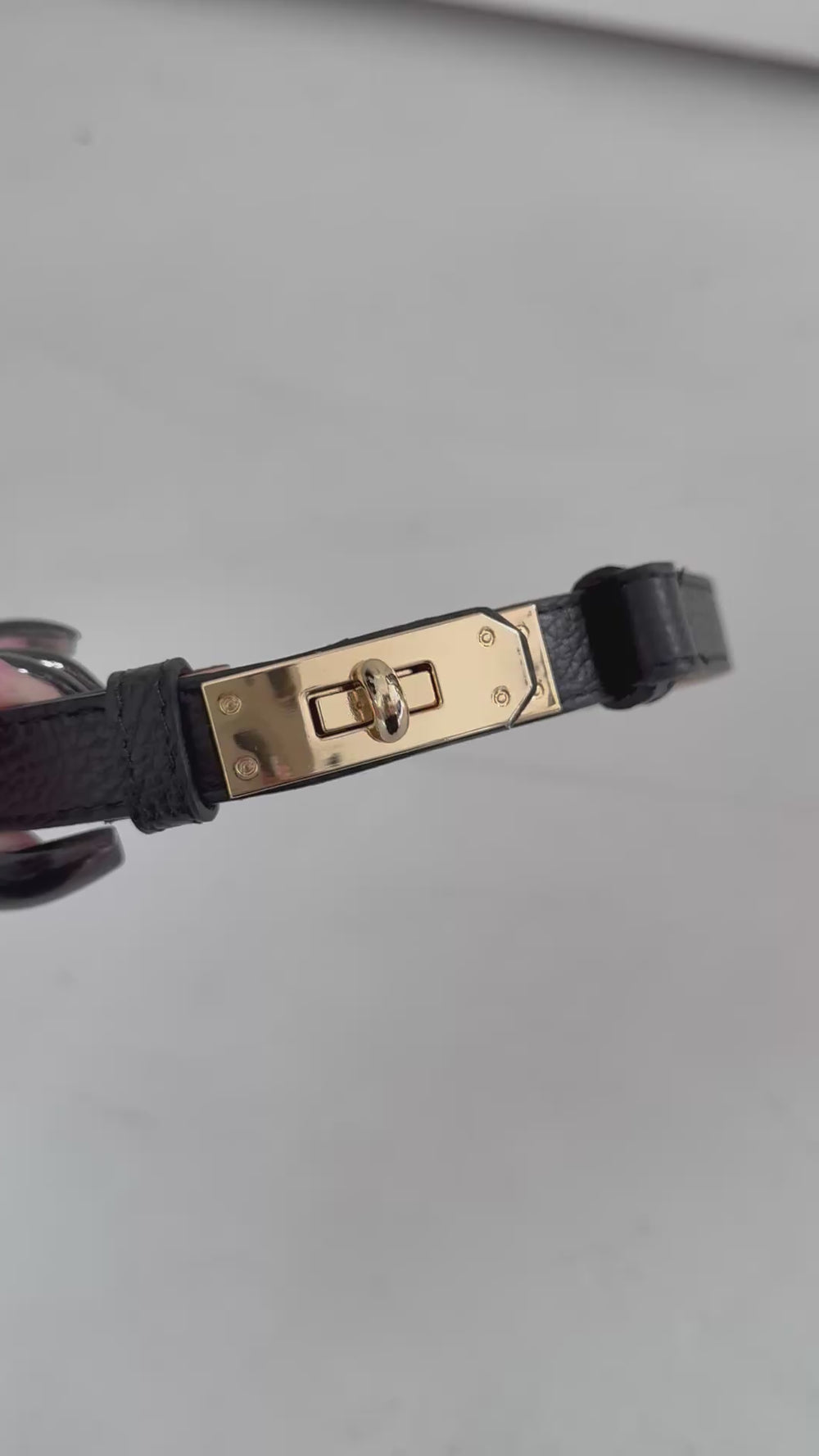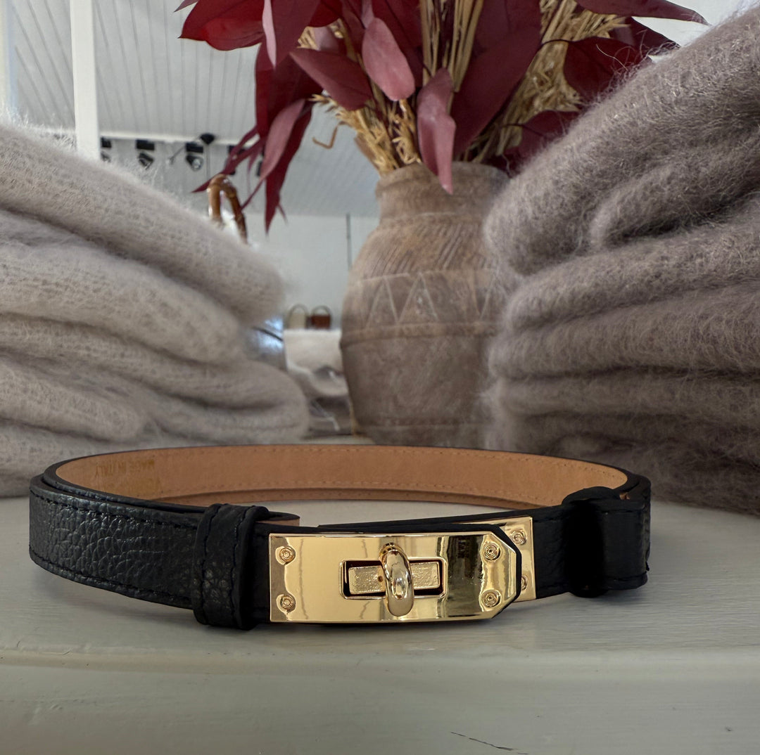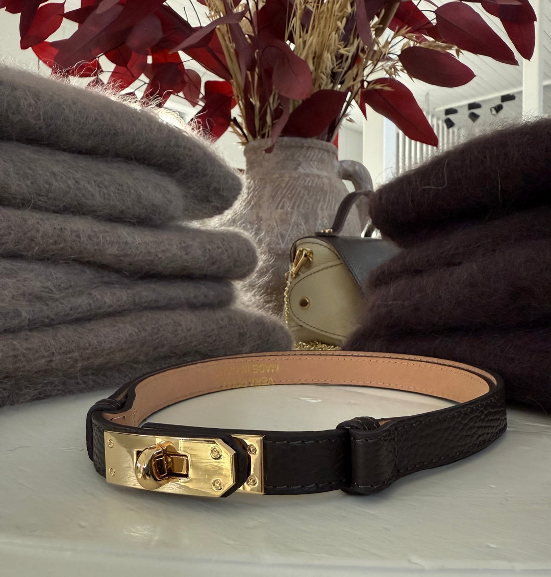 MINI ARWEN - Liten Läder väska med bambu lås - Svart