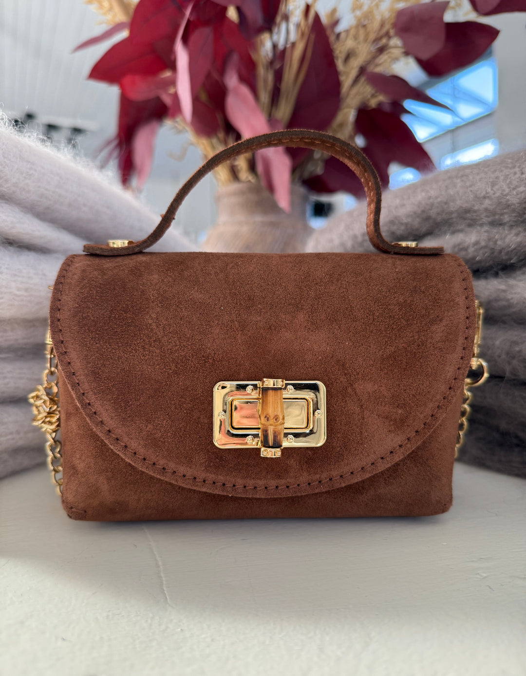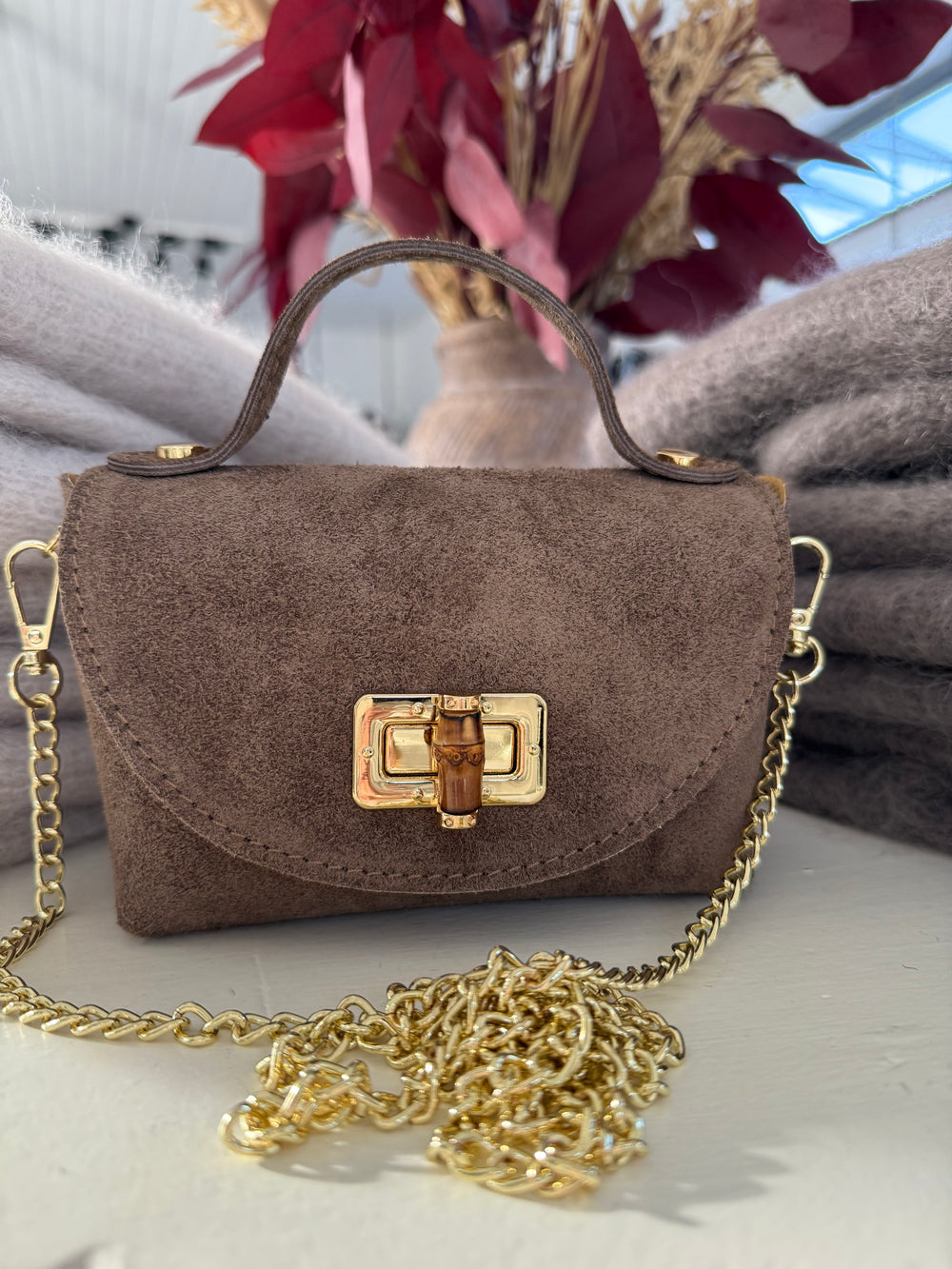 MINI ARWEN - Liten mocka väska med bambu lås - Brown