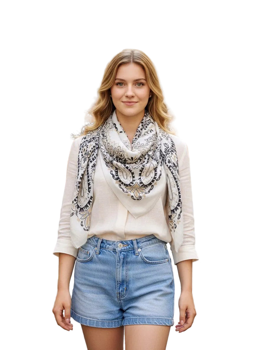SELECTED BY KABARE - Macy - Sjal - Vit mönstrad