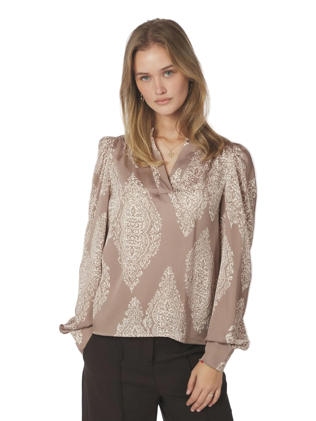 Neo Noir - Rosslyn Paisley Drop Blouse - Dark Taupe