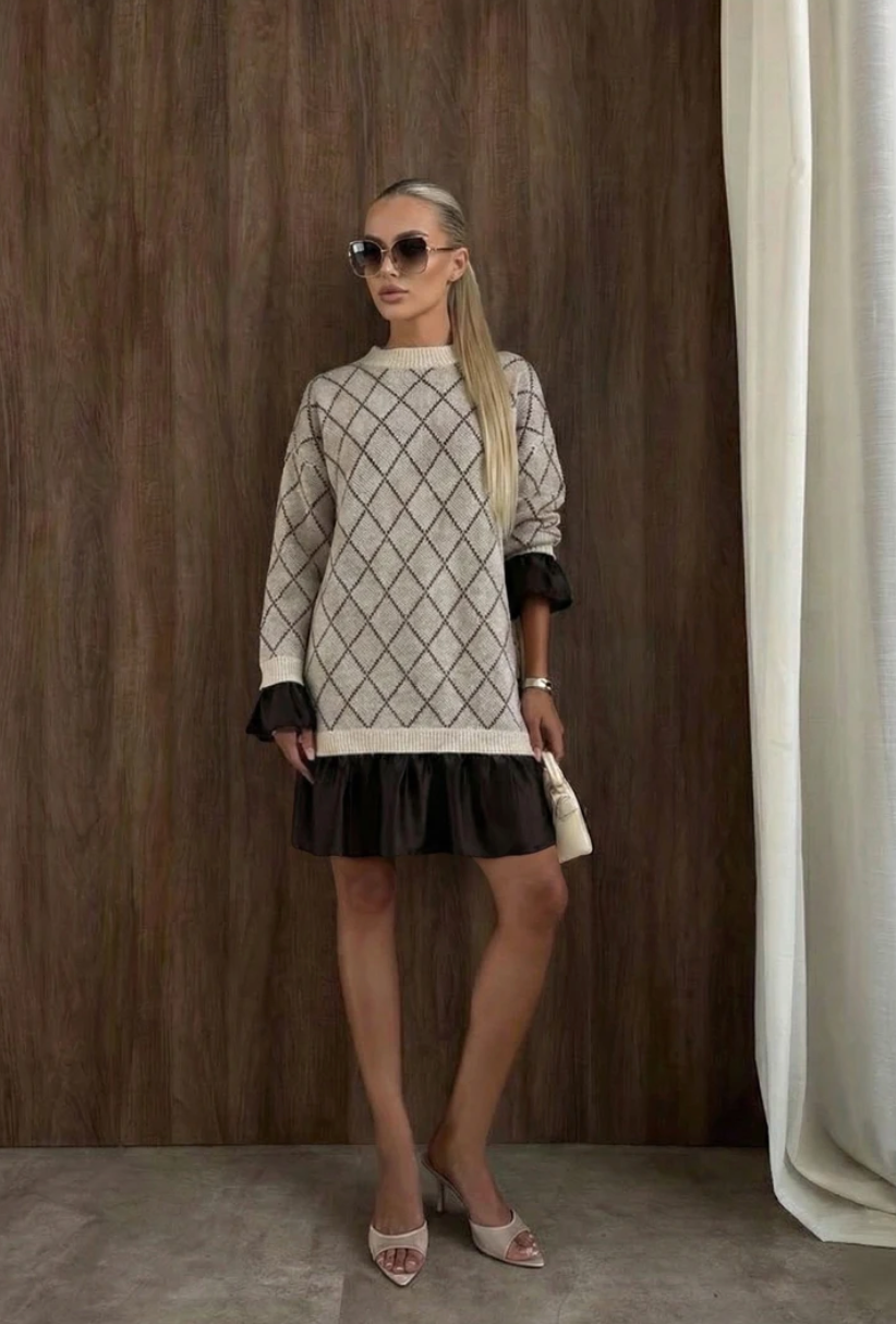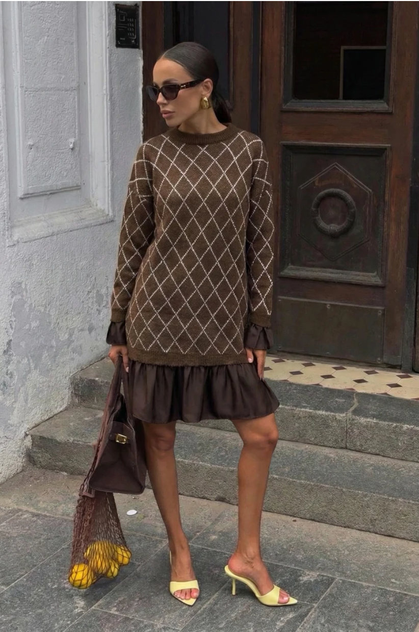SELECTED BY KABARE - Diamond - Stickad klänning med volanger - Brun