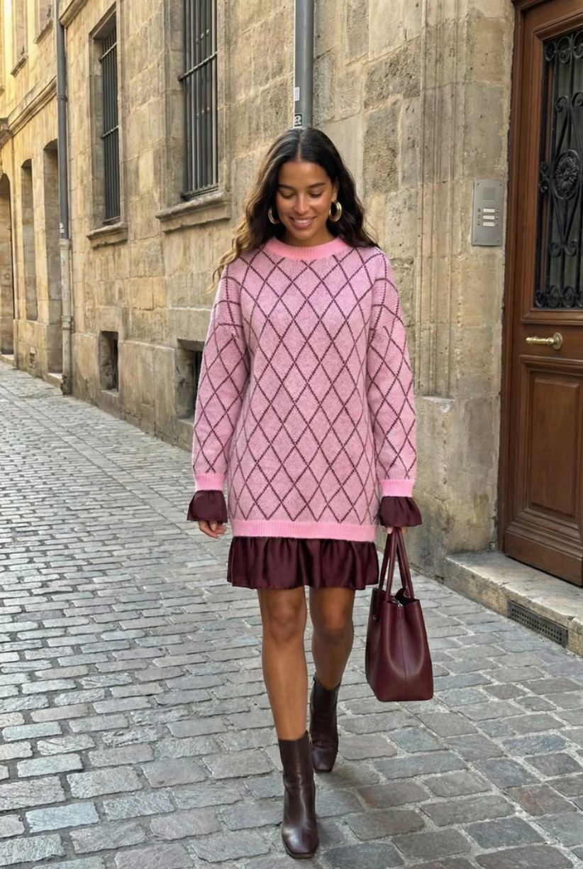 SELECTED BY KABARE - Diamond - Stickad klänning med volanger - Rosa