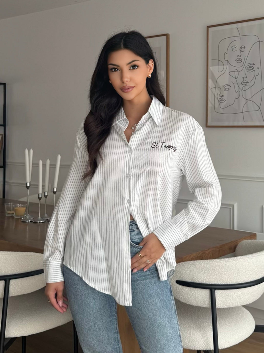 SELECTED BY KABARE - Tropez - Kritstrecks randig skjorta med brodyr - Vit