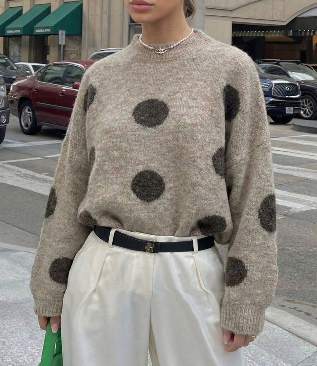 SELECTED BY KABARE - Polka - Mjukstickad jumper - Beige