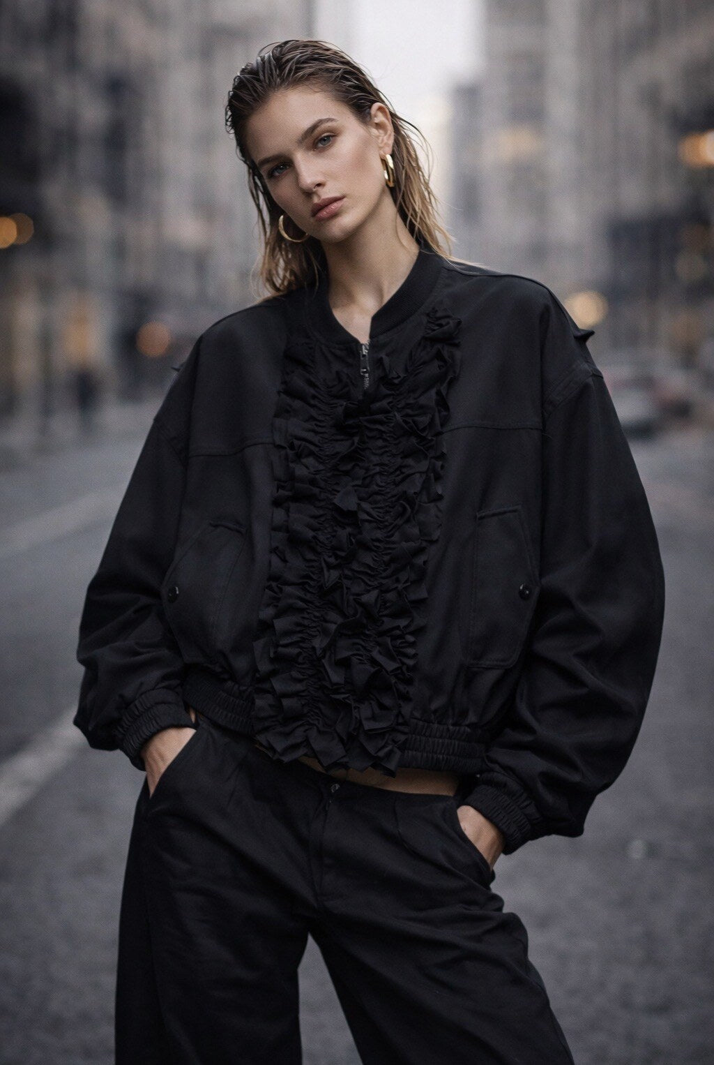 SELECTED BY KABARE - Mila - Bomberjacka med krås - Svart