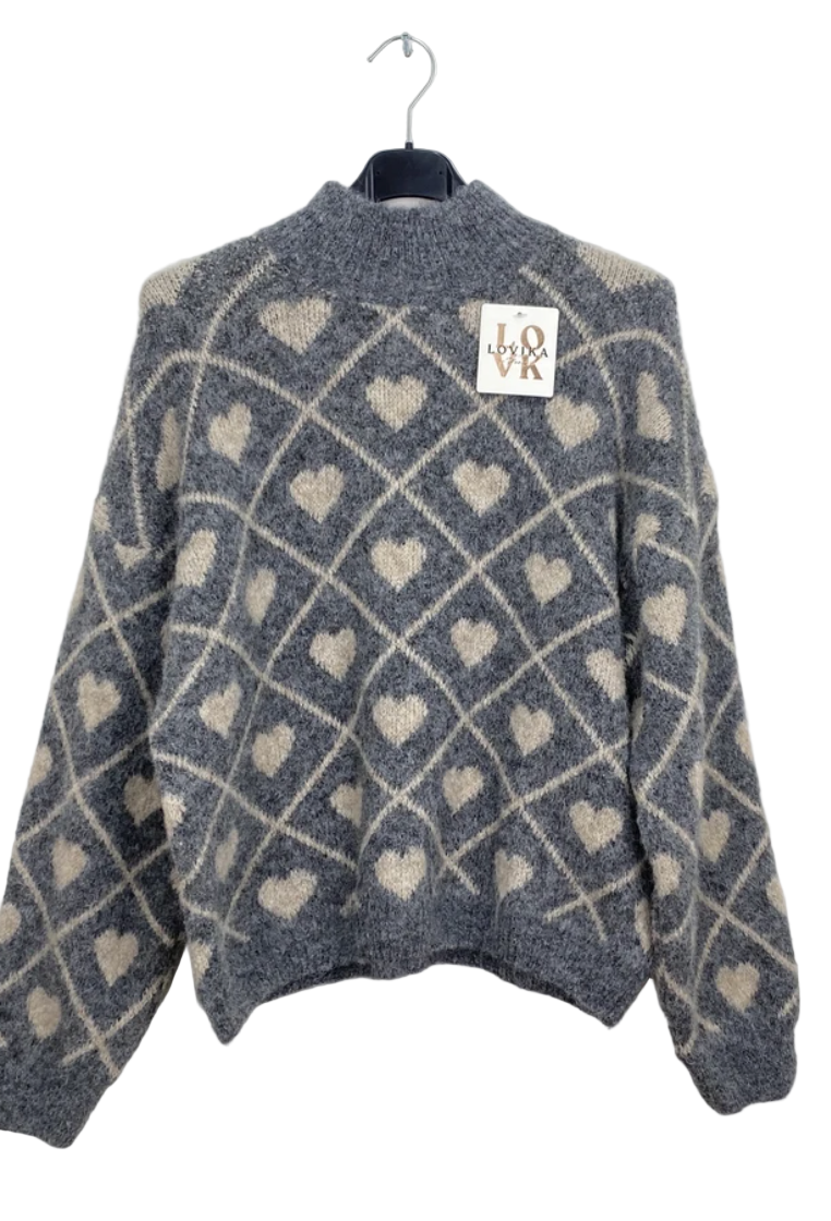 LOVELY - Turtle neck knit heart jumper - Grey/Beige