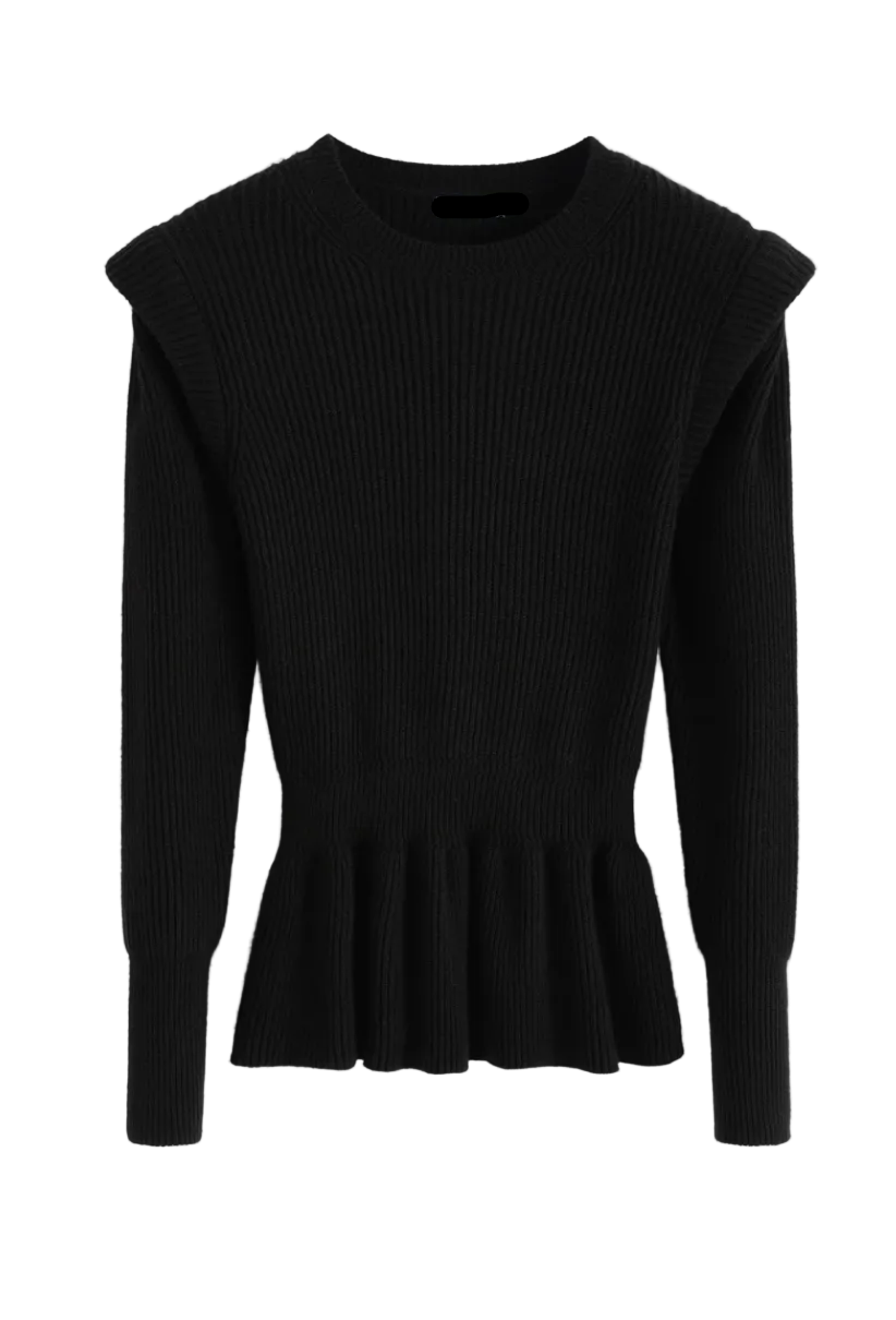 Ribbstickad tröja i super mjukt material. Rund hals och rak ärm. Modellen är helt tajt över magpartiet för att sedan släppa nertill och få ett klockat fall. En markerad axel gör denna tröja så kaxig på.