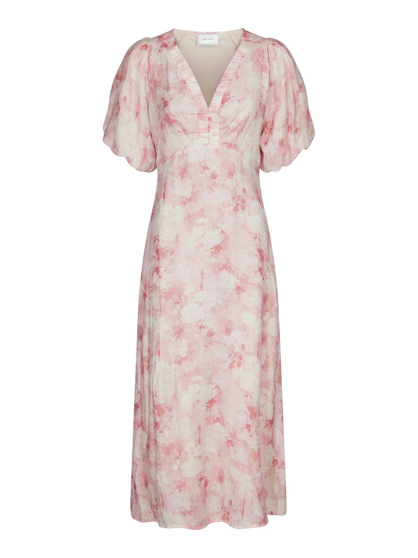 Bästsäljaren är tillbaka i ett nytt kvinnligt uttryck. Klänningen har en 3/4 dels ärm med puff och resår. Vackert och mjukt tyg. V ringad hals med resår runt hals och byst. Perfekt och förlåtande passrom. A form. Passar ypperligt till Bröllop, dop, student, sommaravslutningar och sommarfester. Modellen är 176 cm lång och bär storlek 36.
