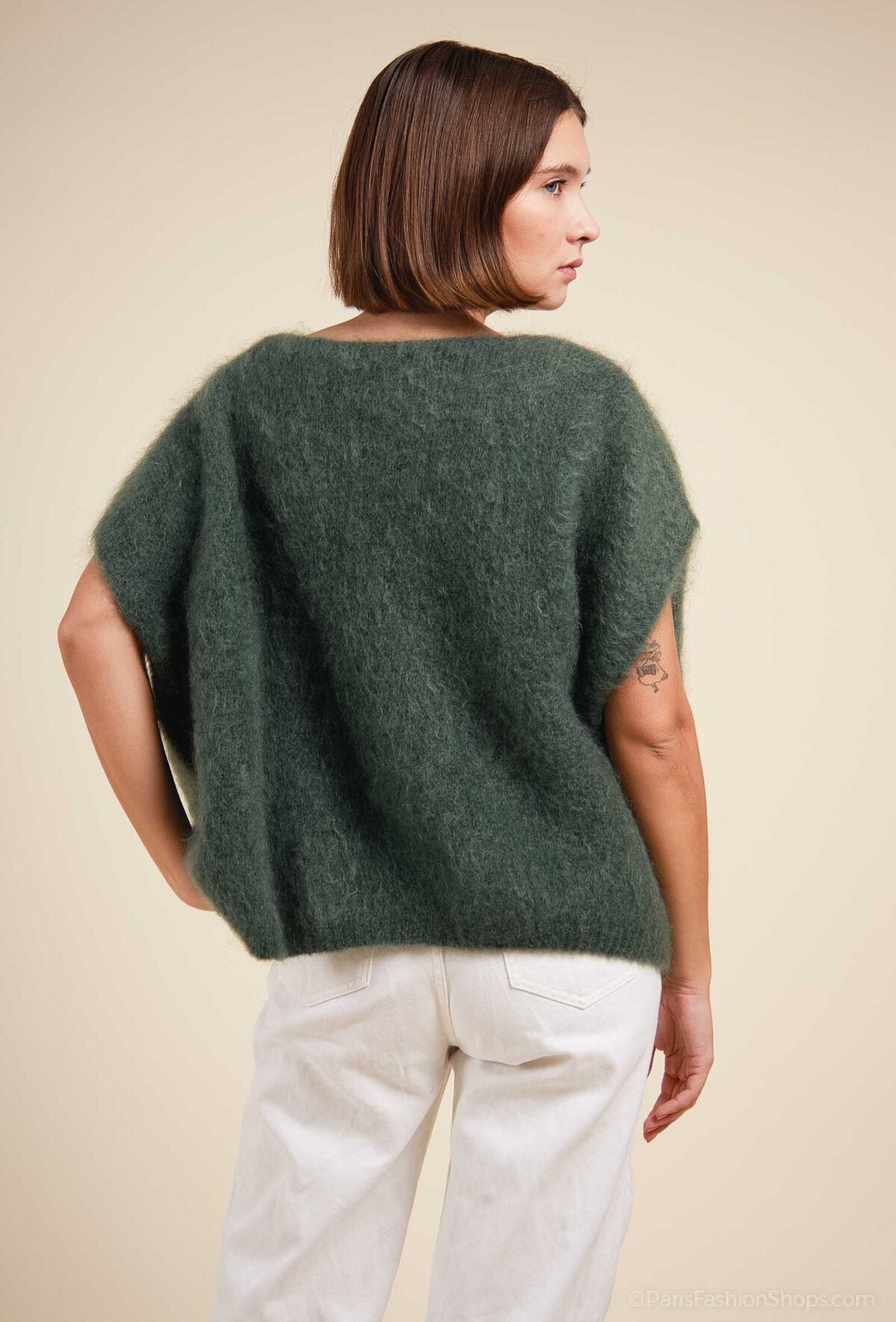 En extra mjuk och fluffig tröja i oversized modell. 58 cm lång. En V ringning fram så denna västliknande tröjan är så snygg över en skjorta eller ovanpå en blus för att jobba med lager på lager.
