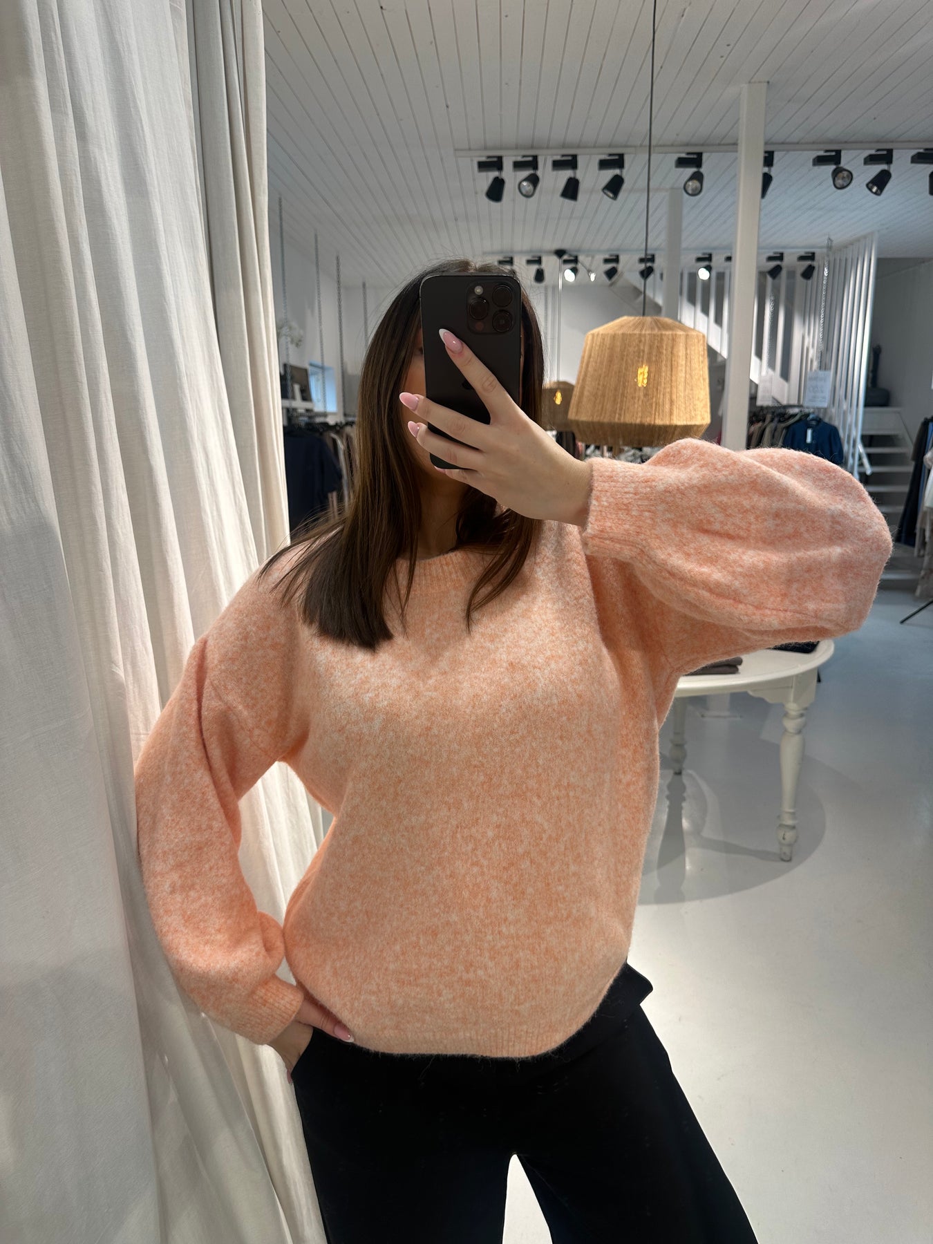 SELECTED BY KABARE - Softy - Ultramjuk stickad tröja med ballongärm - Papaya