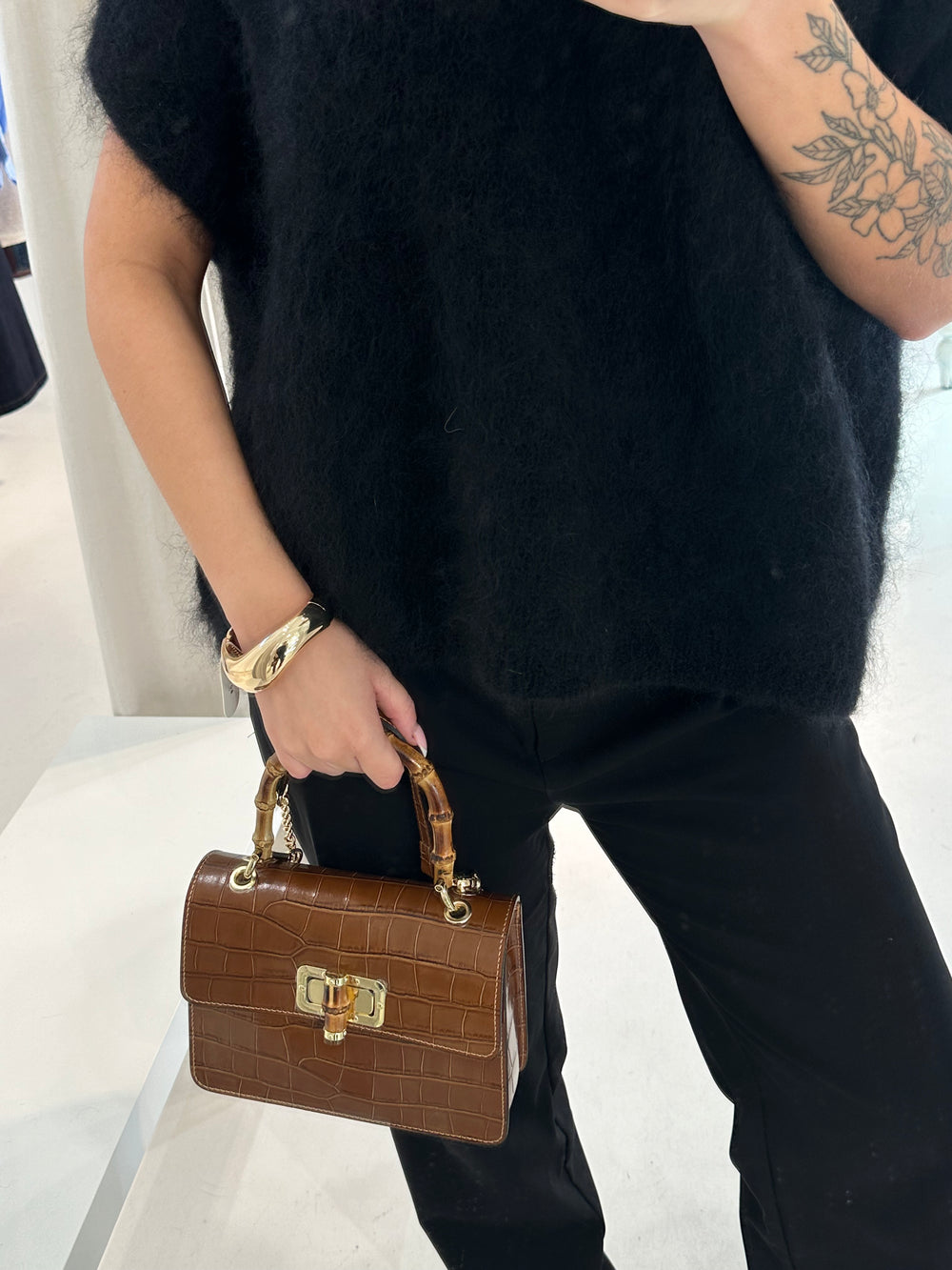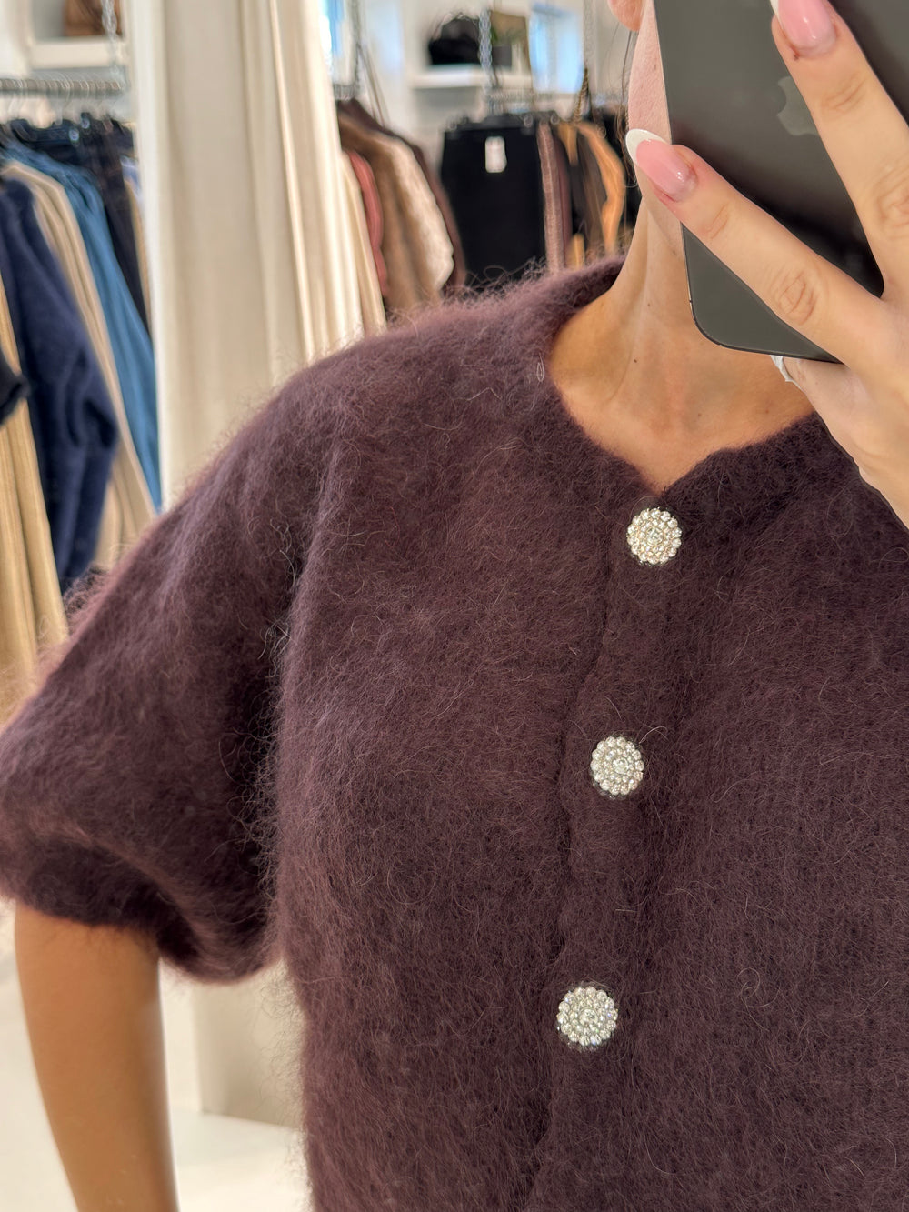 DIAMANT - Fluffy Mohair Cardigan - Dark Brown