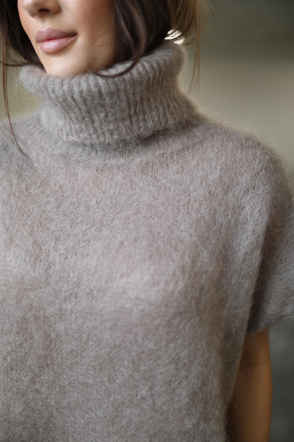 MOLLY - Fluffy Mohair Turtleneck Sweater - Taupe