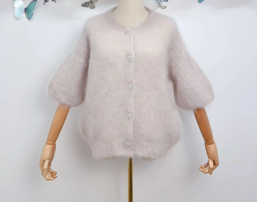 DIAMANT - Fluffy Mohair Cardigan - Ivory