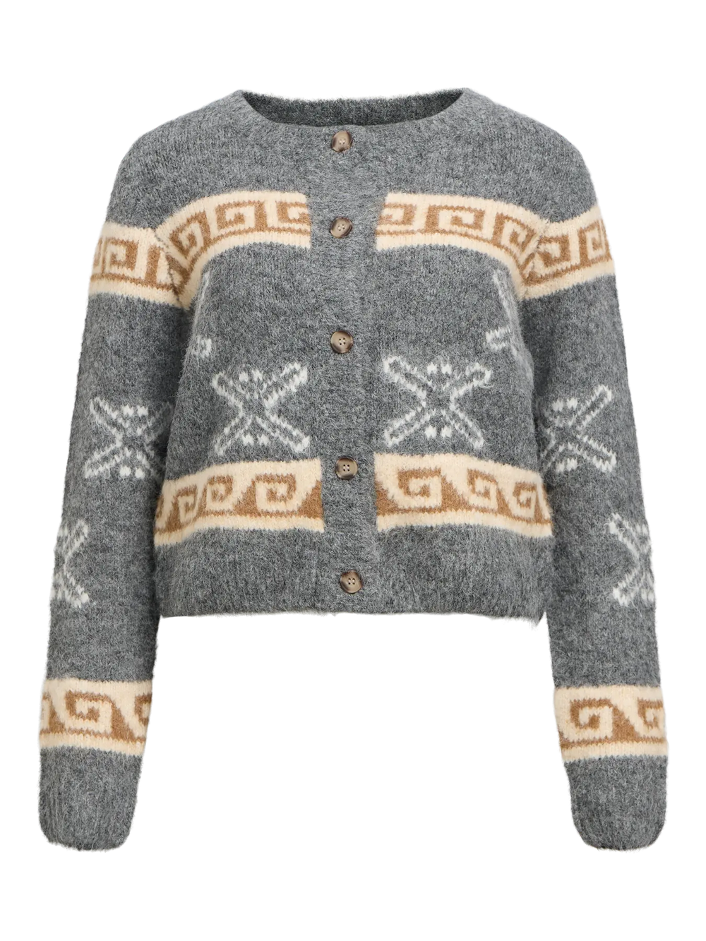 GALIA - Knit Cardigan - Grey/Camel