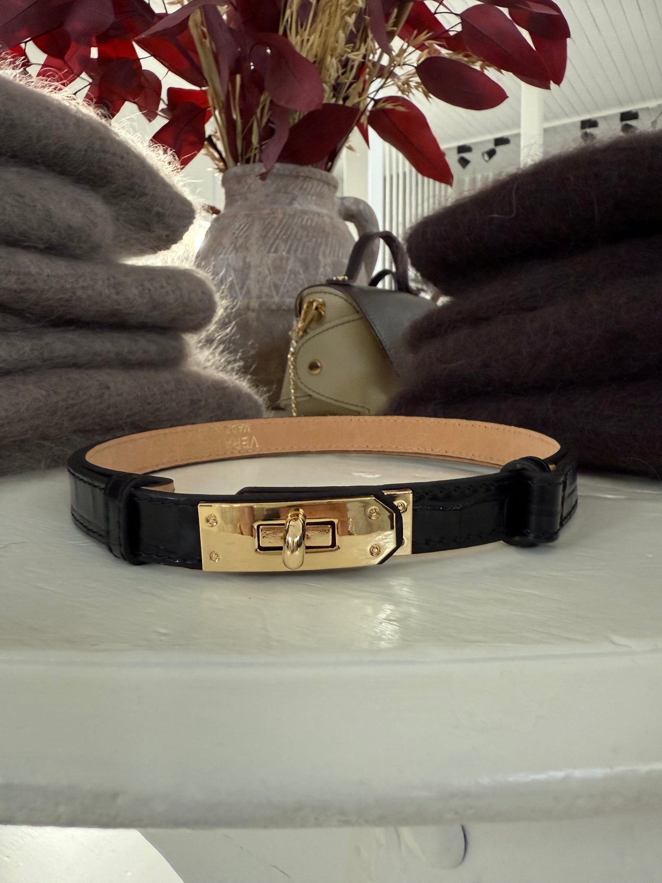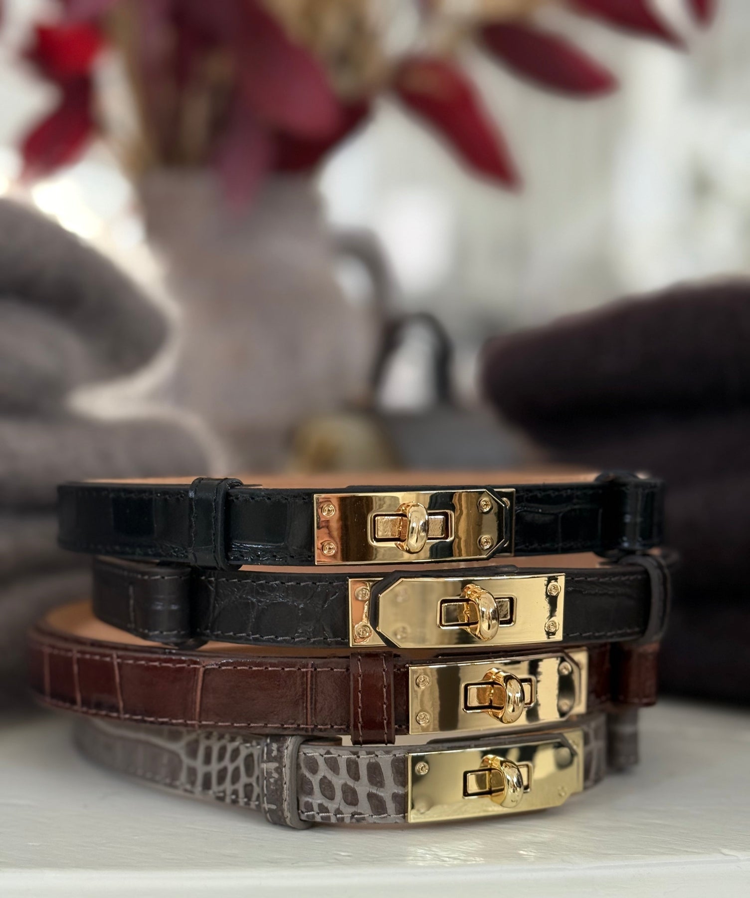 Det perfekta bältet som både är väldigt snyggt, trendigt och användbart. Ett onesize bälte som du själv justerar i läng, upp till 98 cm. Ett guldigt lås framtill. Snyggt till klänningar, kjolar och byxor, passar alla hällor. Snyggt även utanpå kavajer, kappor eller stora stickade tröjor där du vill markera midjan.